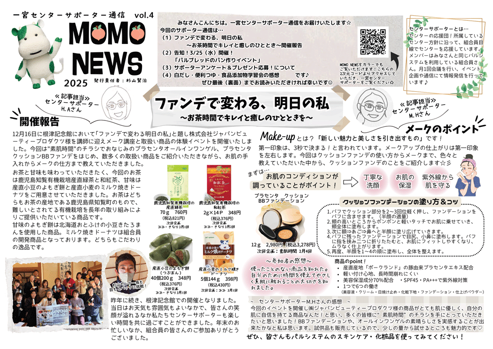 - センター長方針のもと、組合員へパルシステム山梨 長野の事業と活動の取り組みを伝え、組合員への浸透、地域深耕などを行います。