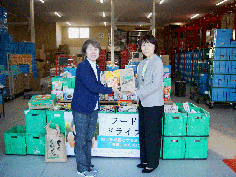 今回寄せられた食料支援品は、フードバンク山梨、西桂町社会福祉協議会、長野県諏訪地域振興局へお贈りしました。