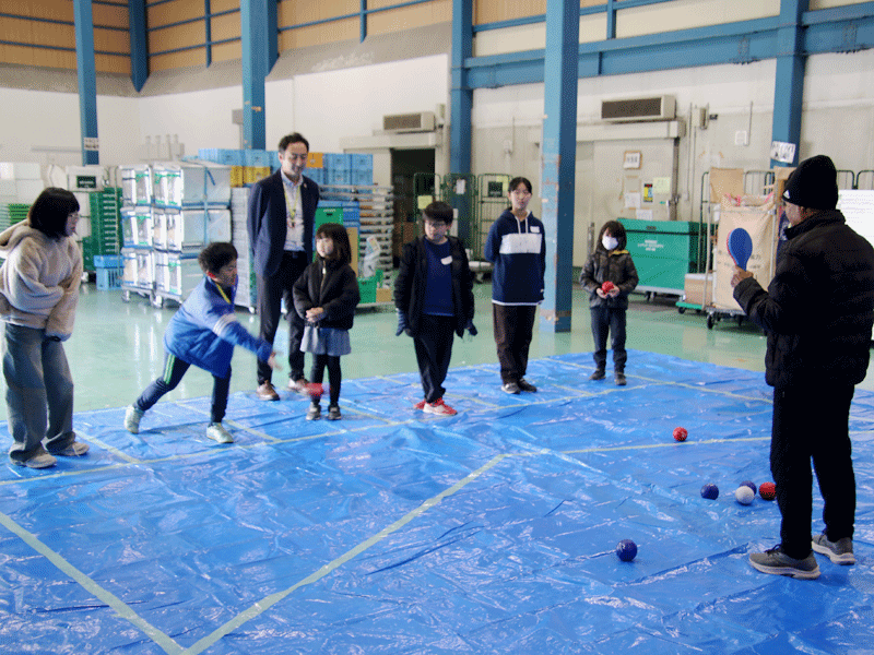 午前の部は、笛吹市春日居町でボッチャを開催している皆さんにご協力いただき、ボッチャ体験を行いました。子どもも大人も手軽に始められ、和気あいあいと、時には真剣に競技を行いました。ボッチャで打ち解けた後は、手作りカレーと温野菜サラダをみんなで一緒に楽しく食べました。ボッチャで体を動かした後のカレーは特別おいしく感じました。