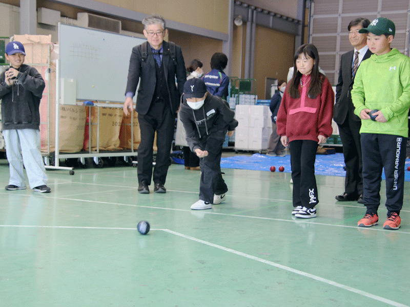 午前の部には、山梨県ボッチャ協会を講師にお招きし、ボッチャ体験を行いました。寒い倉庫内の中での体験でしたが、ボッチャの試合は熱戦が繰り広げられていました。ボッチャは子どもも大人も手軽に始められ、和気あいあいと、時には真剣に競技を行いました。