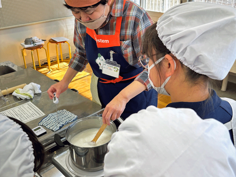 山梨大学付属小学校(山梨県甲府市)主催で、出前講座「お豆腐作り講座」を開催し、小学3年生102名が食品について考えました。