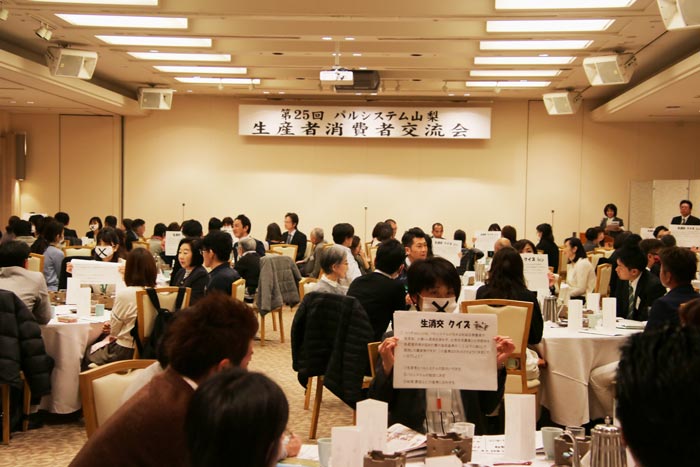 201938日(金)にホテル春日居にて「産直ハンパないって!!~未来へ結ぼう 産地直結」をテーマに生産者消費者交流会を開催しました。
