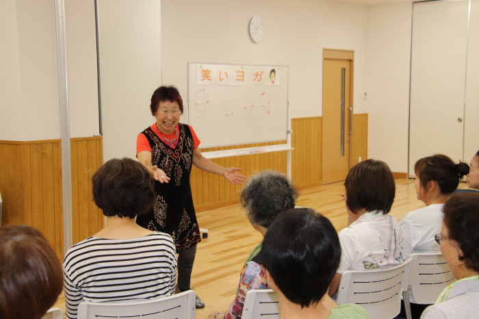 当日は、20歳代~80歳代の幅広い年齢層の方々、23名が参加され、笑いヨガ講師の杉山久子先生による、体を動かして笑うという貴重な体験をしました。