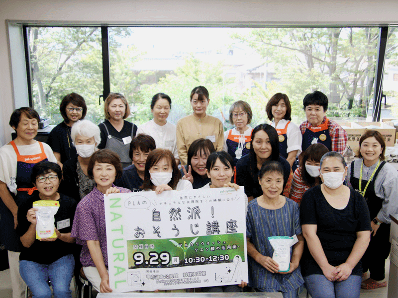 9/29(月)に自然にやさしいナチュラルなお掃除をこの時期に☆彡「PLAの自然派!おそうじ講座~アルカリウォッシュ・クエン酸活用術~」を甲府遊亀公民館調理室にて開催し、16名の組合員にご参加いただきました。