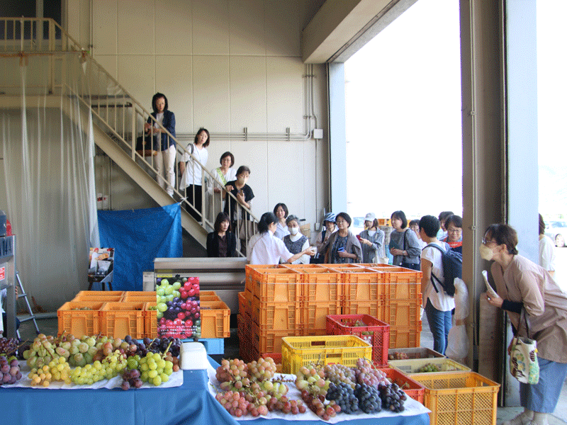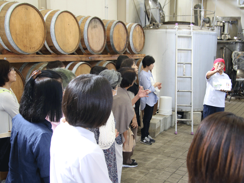 当日は、アサヤ食品株式会社のビネガー工場の見学を行いました。またたくさんの種類のぶどうの試食や作りたてのビネガーの試飲も行いました。