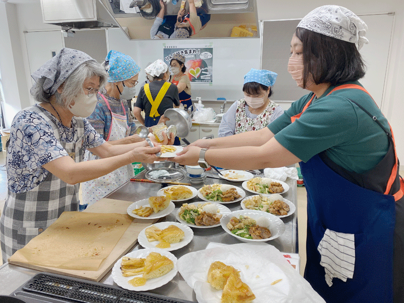 りんごについて学んだあとは、味わう時間です。りんごを使ったランチづくりを行い、りんごを味わい尽くす企画となりました。