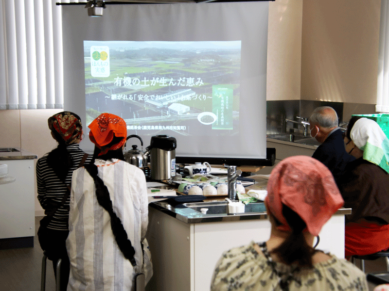 鹿児島知覧有機栽培の緑茶の産地「うまか銘茶会」についてスライドを動画でご紹介し、茶葉の有機栽培の難しさと貴重さをお伝えしました。