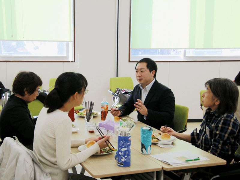 その後は、までっこ鶏商品の「までっこ鶏チキンナゲット」や「までっこ鶏むし鶏」、センターサポーターで事前に調理した「米粉と塩糀を使用したからあげ」などを試食いただきながら講師も含め楽しく交流することが出来ました。