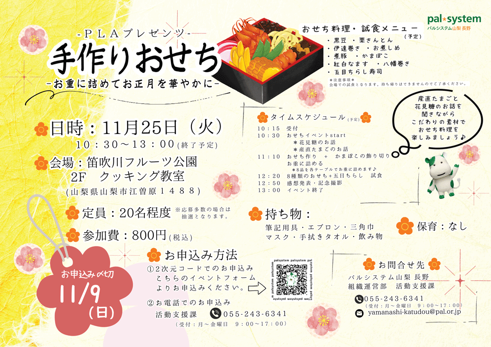 「7種類のおせち料理」と「かまぼこの飾り切り」を作って試食しましょう♪皆様のご応募お待ちしております☆