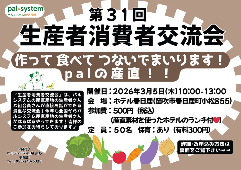 パルシステムの産直産地の生産者と組合員が直接お話ができる貴重な交流会!今年も全国からパルシステム産直産地の生産者がはるばるやってきます!皆さまのご参加をお待ちしております♪