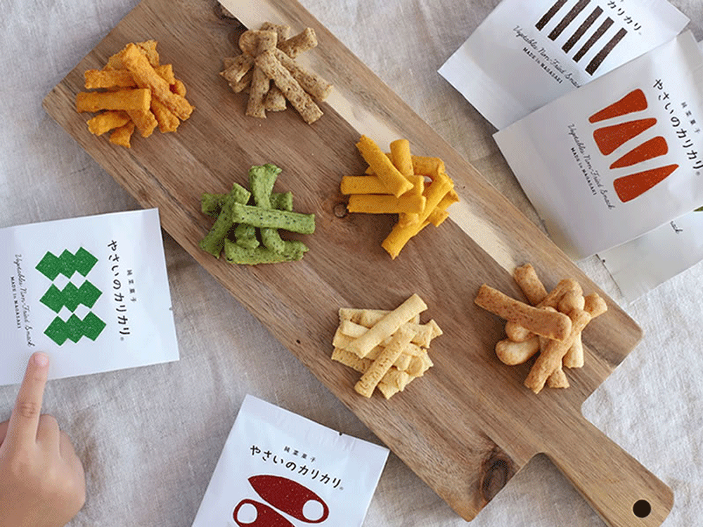 材料の30~40%が野菜でできています。原料にこだわった優しいお菓子は、卵、バター、牛乳などの乳製品、小麦粉、上白糖を使用していない、かりっとした食感のノンフライの焼き菓子です。 |