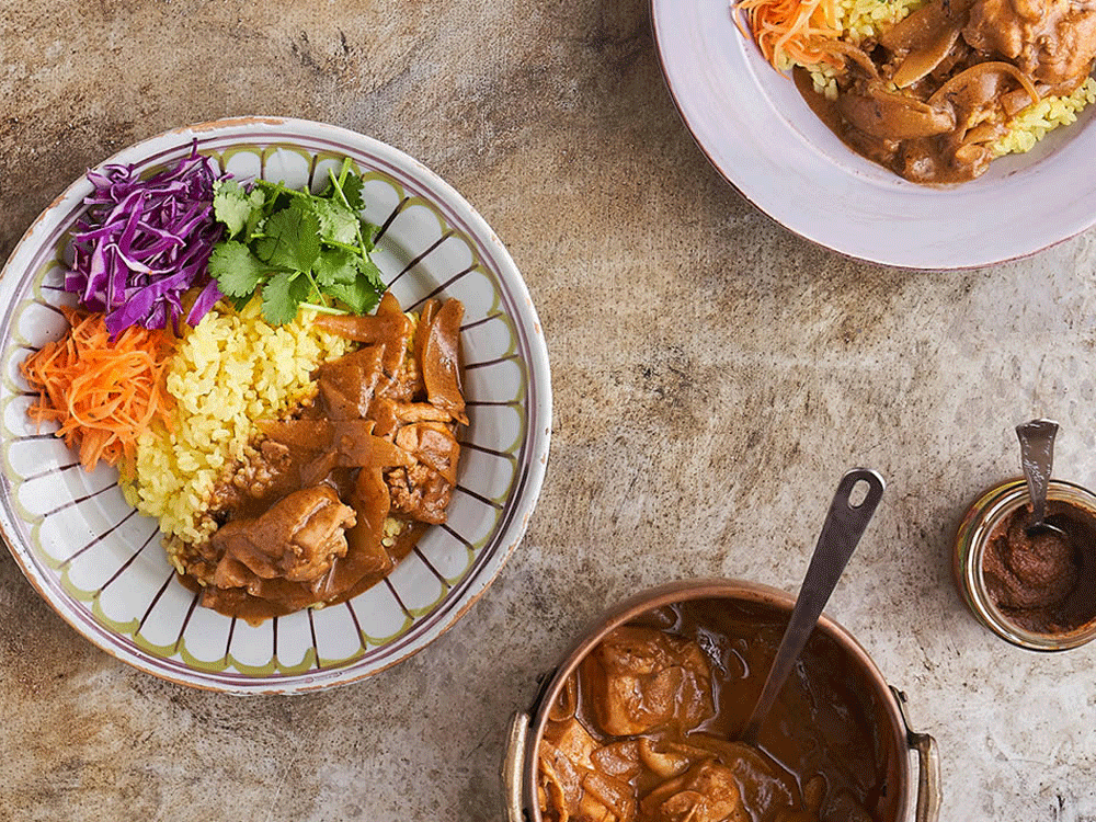 刺激的な辛さと旨味が融合したスリランカの味をそのまま再現。シンハラ語で「カル」=黒い、「ポル」=ココナッツを意味する『カルポル』は、深煎りココナッツの濃厚な味わいに、黒こしょうの刺激的な辛さが特徴。お肉との相性がよく、特に豚肩ロースなどがっつりしたお肉とよく合います。 |